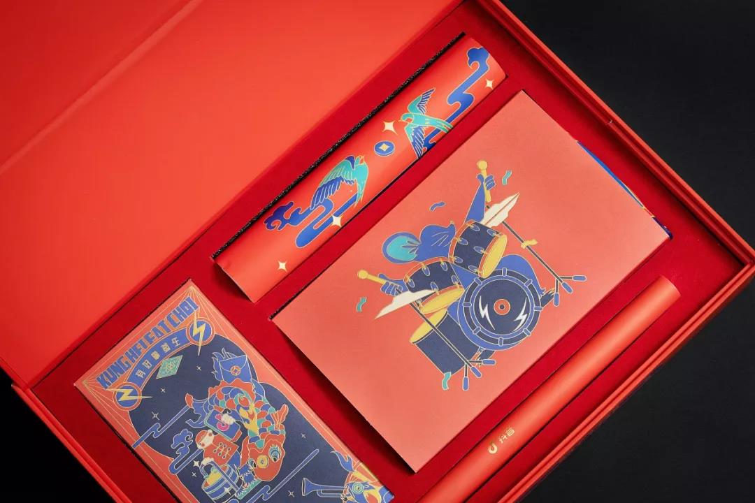 禮盒內有一幅“有好事發(fā)生”掛布、一套春聯(lián),以及大小紅包和福字,更酷的是,禮盒采用折疊設計,一秒變裝飾擺件儲物盒。